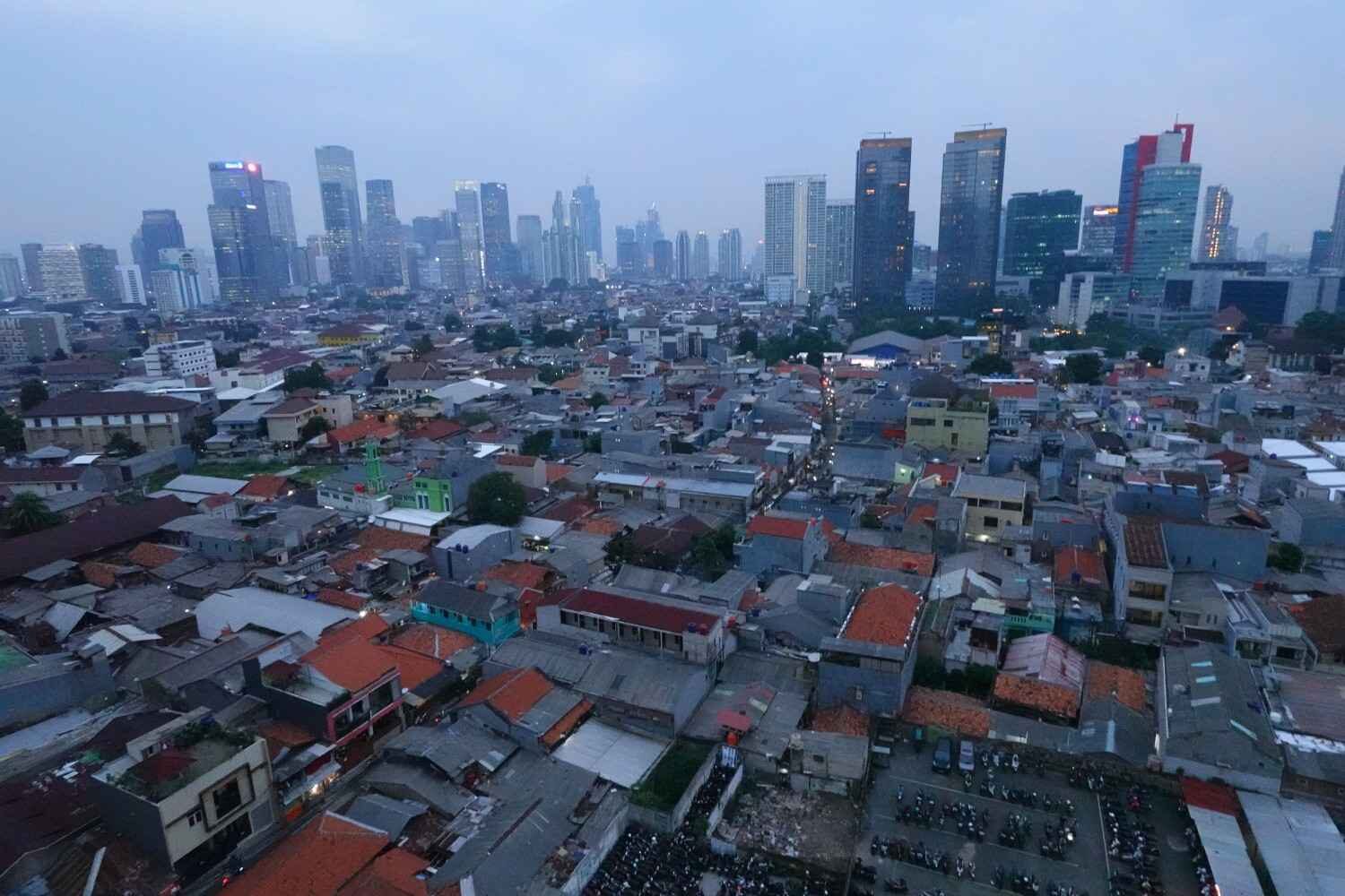 “Suasana permukiman penduduk dan gedung bertingkat di Jakarta, Jumat (10/10/2025).” Kalacitra/ Rizka Aulia