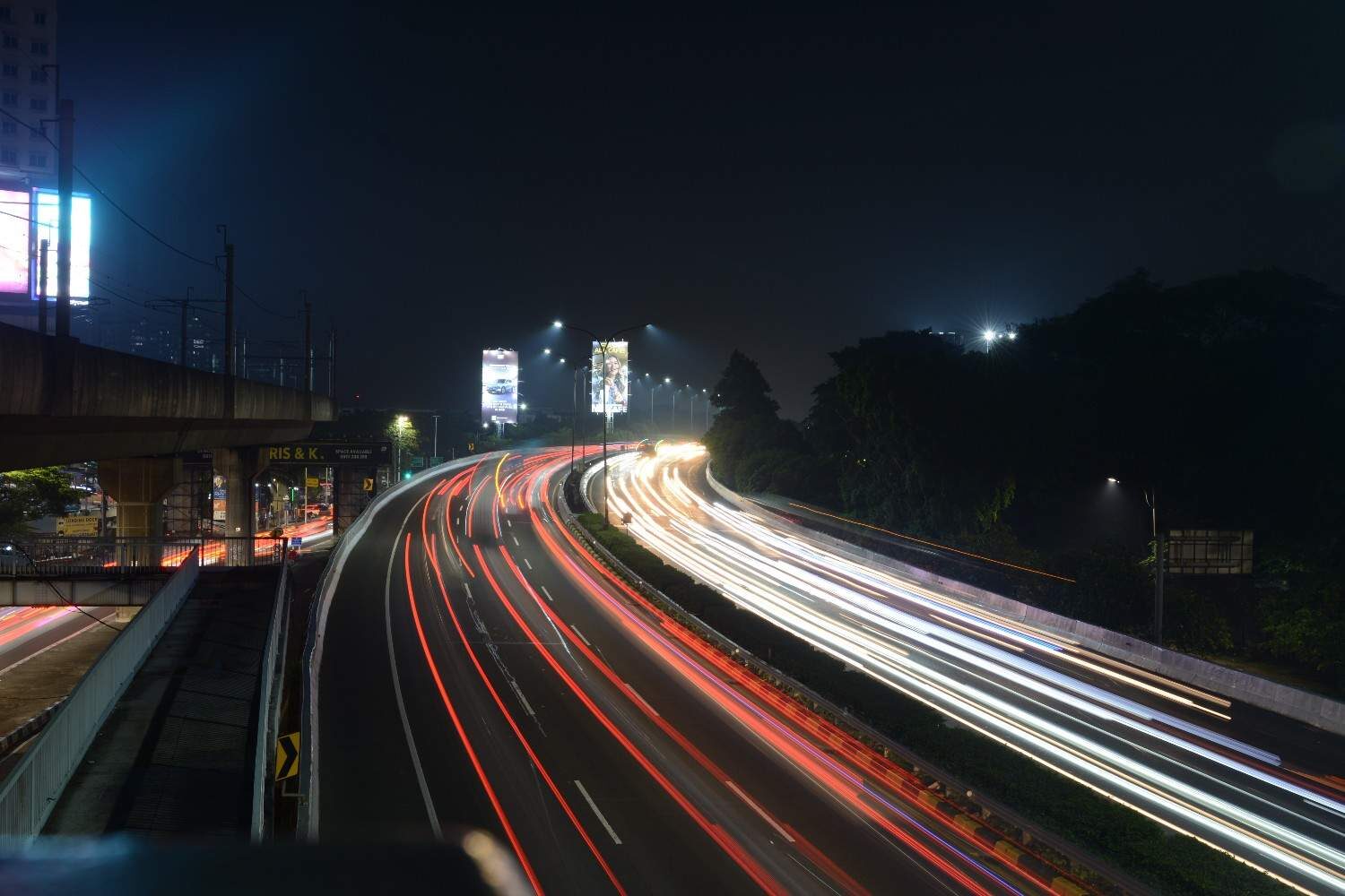 “Teknik fotografi Moving pada jalan padat dari JPO Lebak Bulus, Jalan R. A Kartini, Pondok Pinang, Kebayoran Lama, Jakarta, pada Sabtu (18/10/2025).” Kalacitra/ Millah Hanifiyah