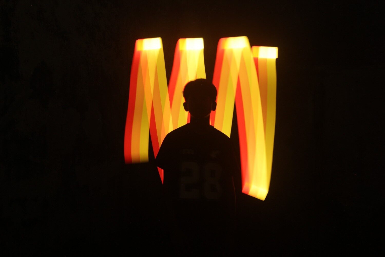 “Seorang pemuda berdiri didepan garisan cahaya membentuk M dan N. Manusia dan Noktah, antara kehidupan dan ketiadaan.” Kalacitra/ Taqiyuddin Abdurrahman