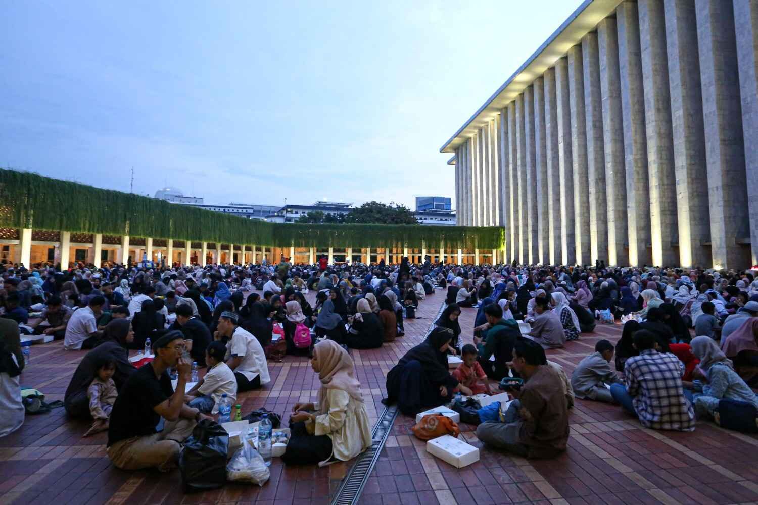 “Sejumlah warga berbuka puasa bersama di Masjid Istiqlal, Jakarta Pusat (8/3/2025).” Kalacitra/ Koiddatun Hasanah