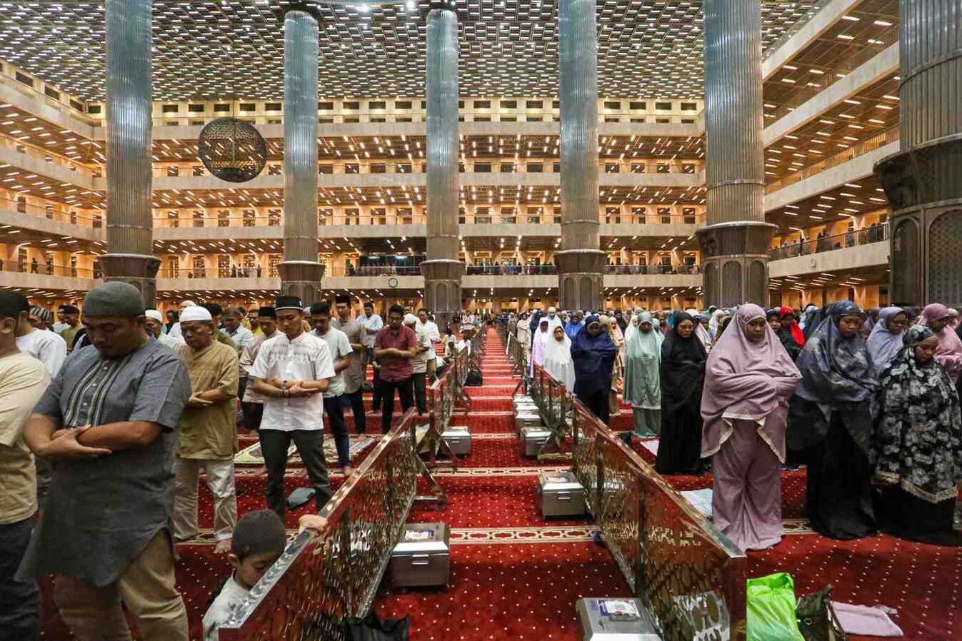 “Sejumlah umat muslim menghadiri buka puasa bersama di Masjid Istiqlal, Jakarta Pusat, Sabtu (8/3/2025). Kalacitra/ Muhammad Abyansyah
