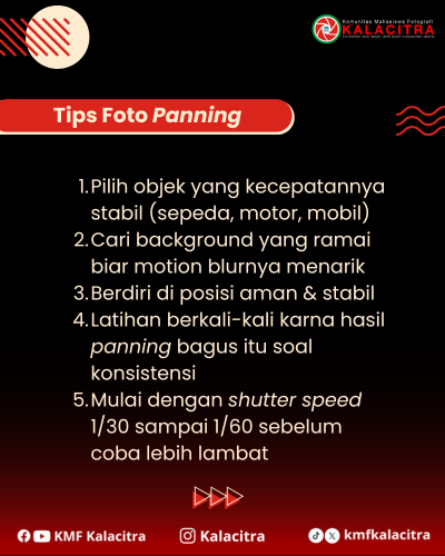 Itulah beberapa teknik panning yang dapat membuat foto lebih menarik. Dengan memahami dan menerapkan teknik yang tepat, foto kamu bisa terlihat lebih estetik